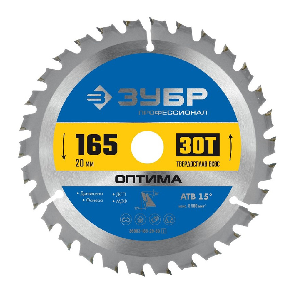 Диск пильный по дереву Зубр 165х20х1,6 мм 30 зубьев (36903-165-20-30_z01)