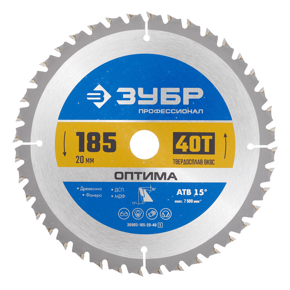 Диск пильный по дереву Зубр 185х20х1,6 мм 40 зубьев (36903-185-20-40_z01)