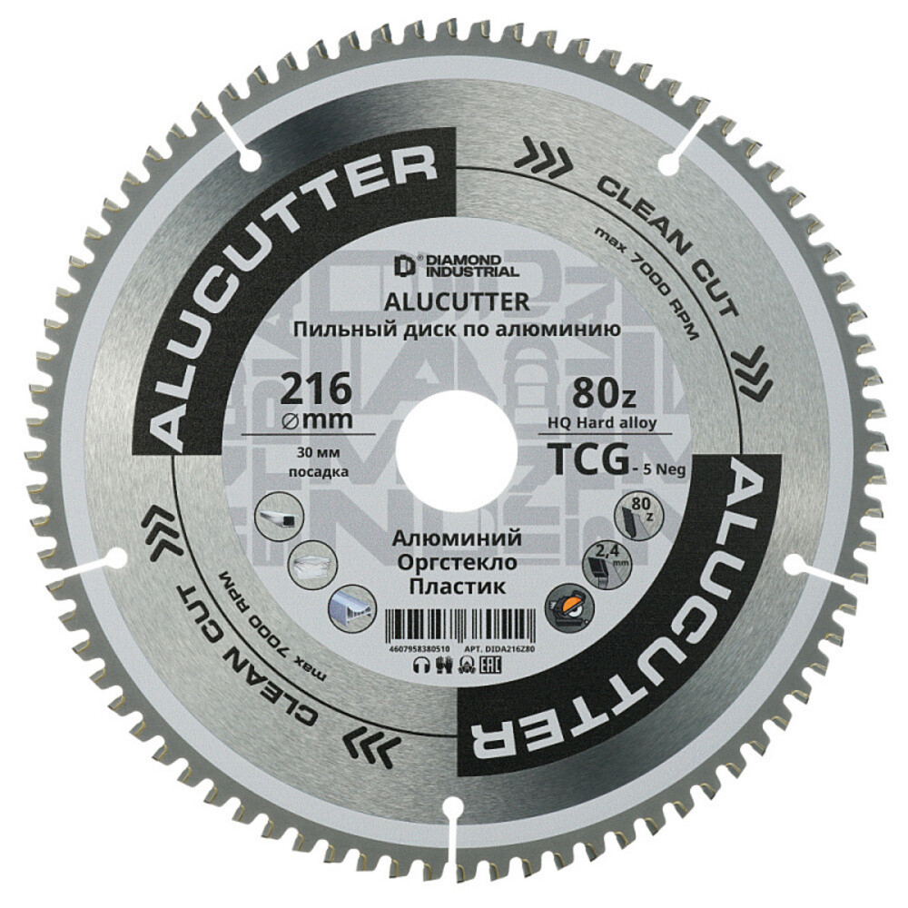 Диск пильный по пластику Diamond Industrial AluCutter 216х30х2,4 мм 80 зубьев (DIDA216Z80)