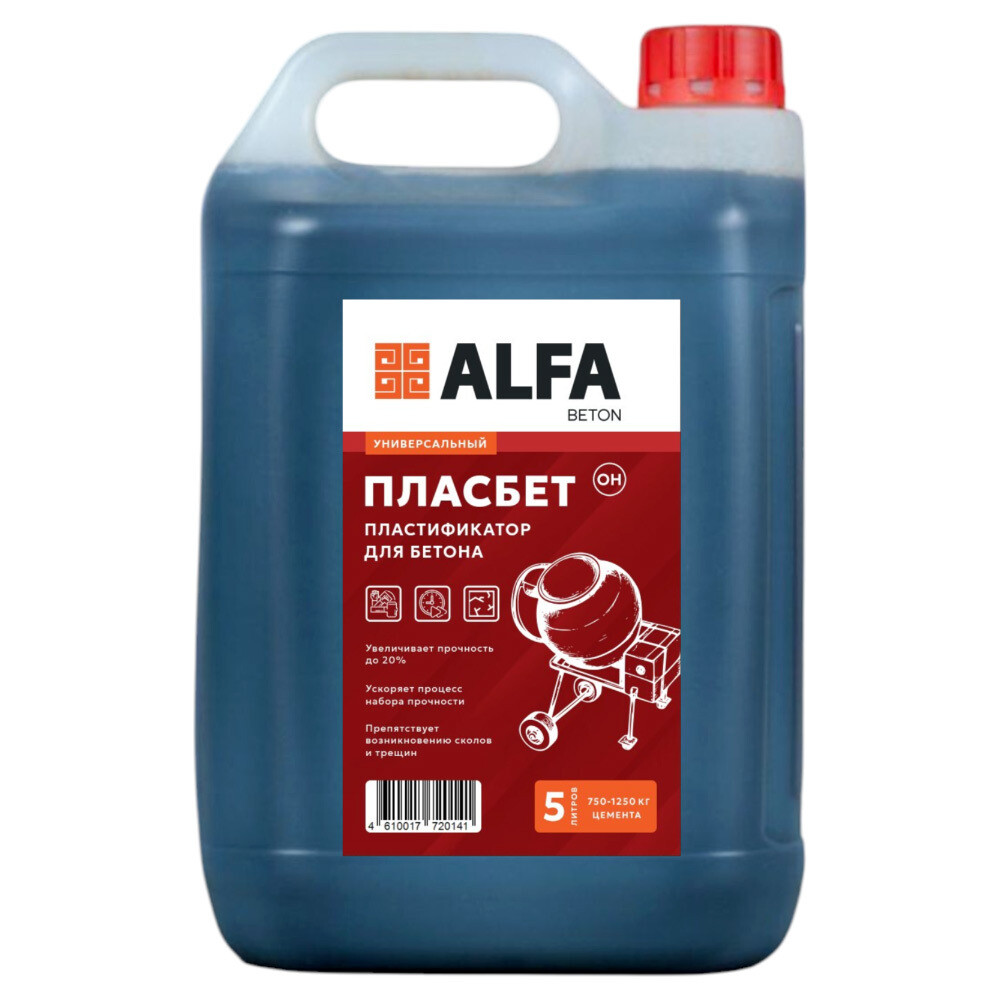 Добавка пластификатор для бетонов и растворов АльфаБетон Пласбетон универсальная 5 л