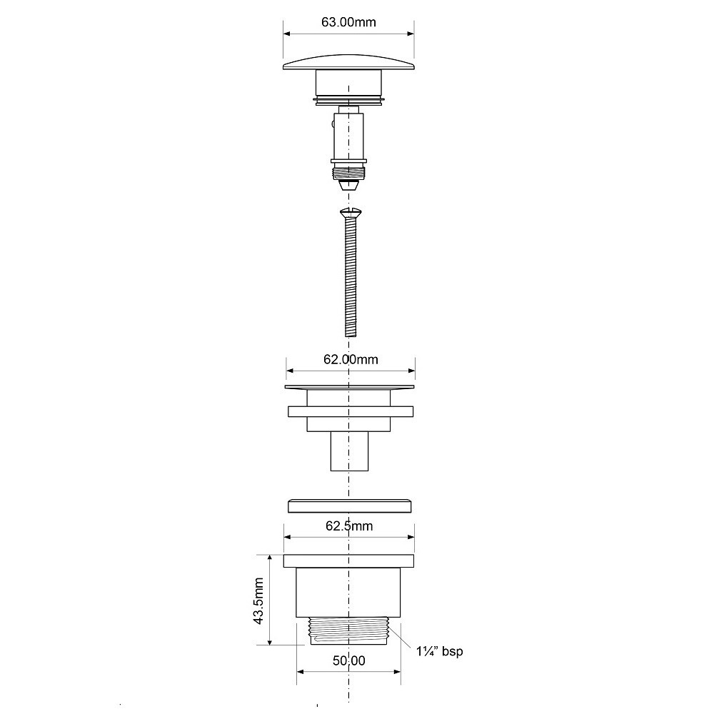 Выпуск McAlpine BCWP60-MBL – металлический выпуск для раковины с сливной решеткой диаметром 60 мм и пробкой типа «кнопка».