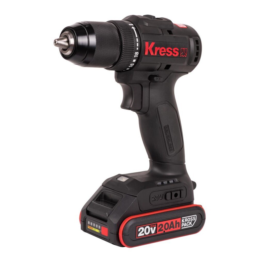 Дрель-шуруповерт аккумуляторная бесщеточная Kress 20 В 2 Ач Li-Ion 2 АКБ и ЗУ (KU212.1)