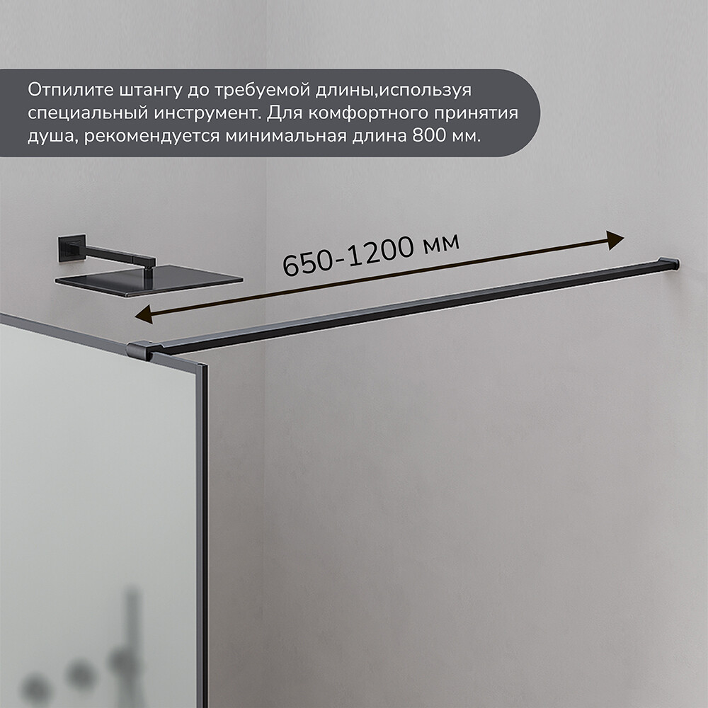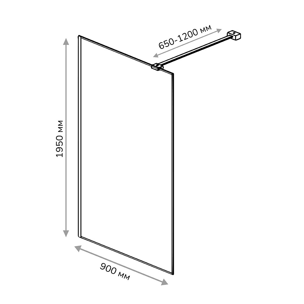 Пристенный профиль -1 шт., штанга – 1 шт., фиксатор штанги к стеклу – 1 шт., фиксатор штанги к стене – 1 шт., уплотнитель (фиксатор стекла) – 1 шт., дюбель – 5 шт., винт – 5 шт., стекло с профилями – 1 шт.