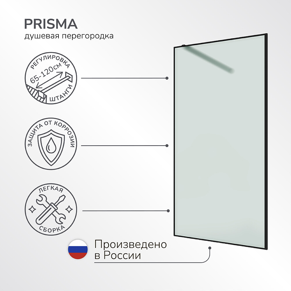 Душевая перегородка Walk in Ulitka Prisma черная 90х195 см стекло матовое 6 мм (74104158)