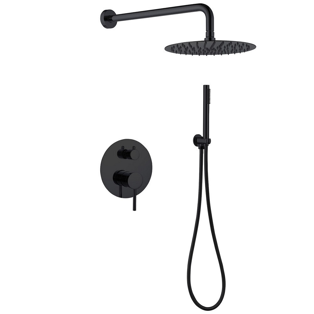 Душевая система Abber Emotion встраиваемая с верхним душем с лейкой со смесителем черная матовая (AF8818B)
