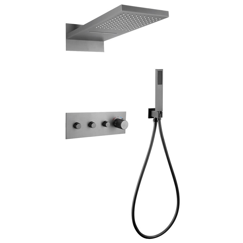 Душевая система Abber Rund встраиваемая с верхним душем с лейкой со смесителем никель (AF8752NG)