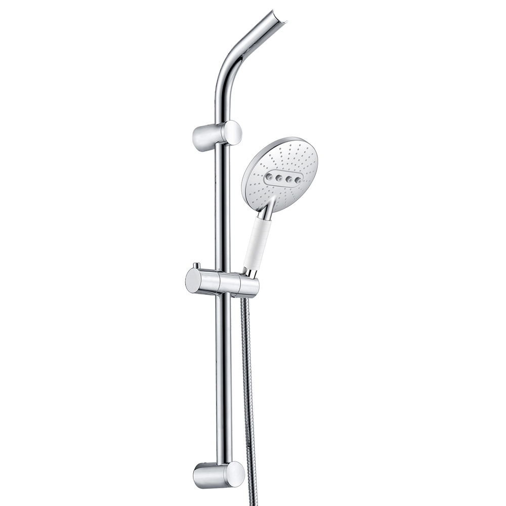 Опции и преимущества: Лейки с системой защиты от известковых отложений. Держатель с изменяющимся углом поворота лейки 180 градусов. Держатель можно поднять или опустить на любую удобную для Вас высоту, для этого необходимо нажать кнопку и, удерживая, перемещать по стойке. Лейка душевого комплекта А044 выполняет две функции: ручная лейка и верхняя душевая насадка. Изделия проходят процесс многослойного нанесения на корпус изделия хрома и никеля. Такое покрытие устойчиво к потускнению, легко очищается и придает изделиям зеркальный блеск и серебристый цвет.