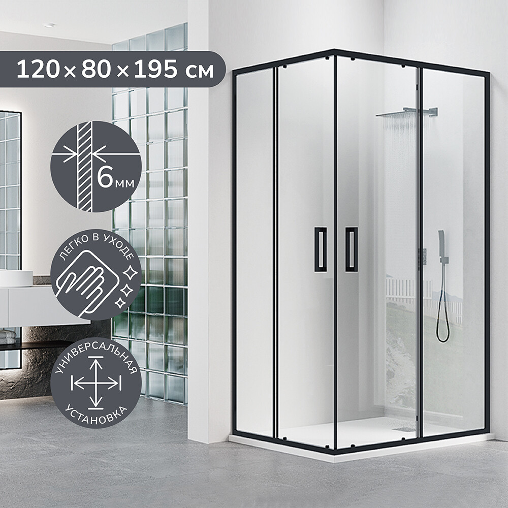 Душевой уголок Ulitka Safari черный 120х80х195 см прямоугольник стекло прозрачное 6 мм (74104005)