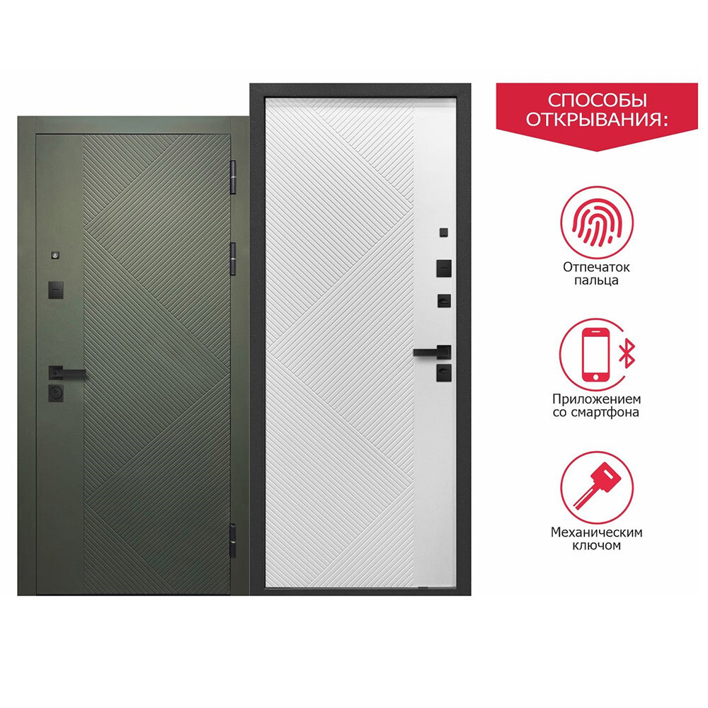 Дверь входная Ferroni Smart 1 левая сатин зеленый — эмалит белый 960х2050 мм с электронным замком