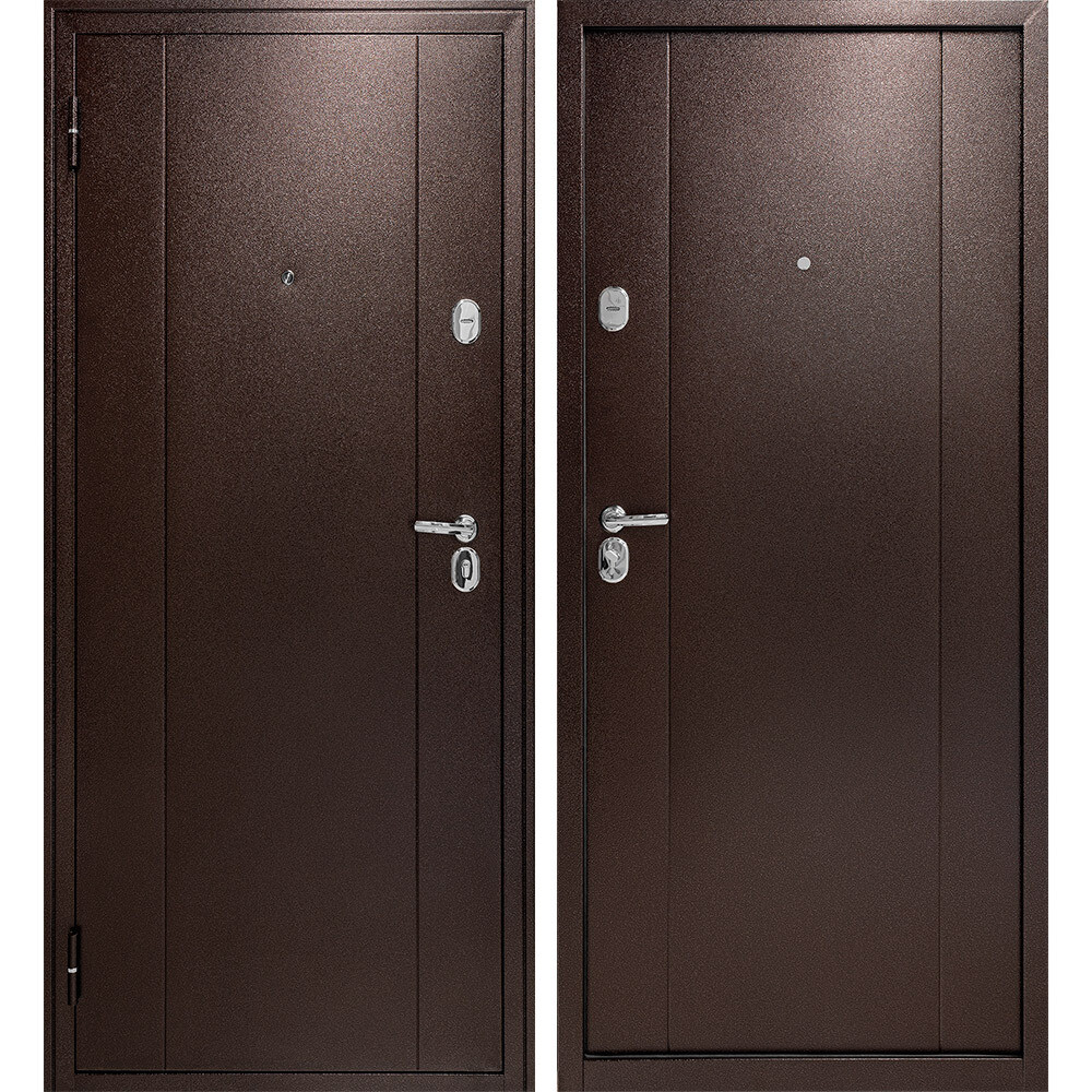 Предназначена для установки в жилых и общественных зданиях в качестве входной двери как внутри помещения, так и снаружи. С двух сторон облицована металлом. Высота двери 2050 мм. Допускается установка на улице при наличии холодного тамбура и навеса не менее 100 см.