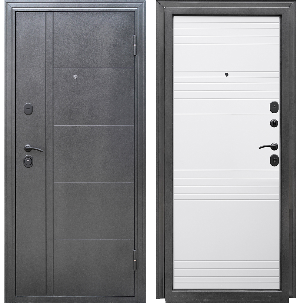 Предназначена для установки в жилых и общественных зданиях в качестве входной двери внутри помещения. Полотно изготовлено из стали. С внутренней стороны облицовано фрезерованной МДФ-панелью толщиной 8 мм. Стальной лист 1 мм с атмосферостойким порошковым покрытием цвета «антик серебро»; панель МДФ, толщиной 8 мм в цвете «белый софт»; наполнение базальтовая плита.
