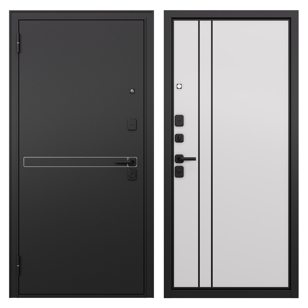 Дверь входная Mastino Райд левая черный муар металлик — белый софт 960х2050 мм