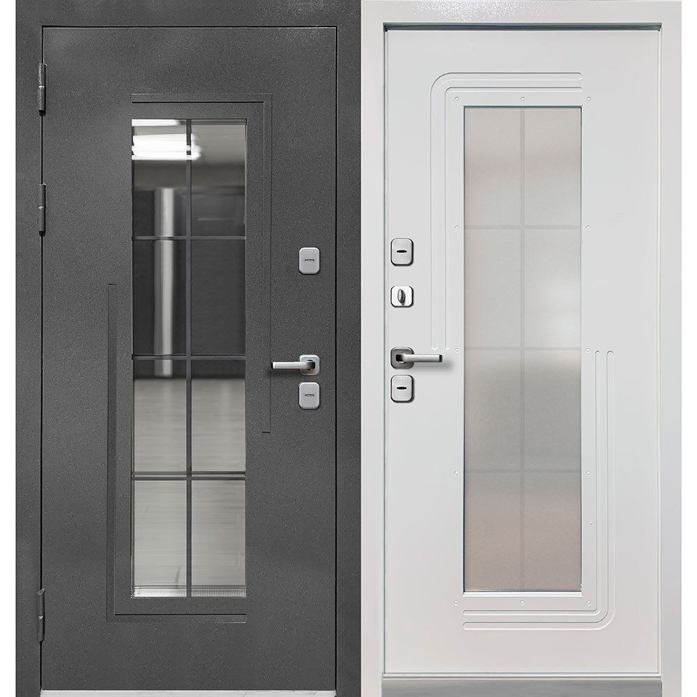 Дверь входная с терморазрывом Ferroni Luxor Termo 7 левая букле графит — эмалит белый со стеклопакетом 960х2050 мм
