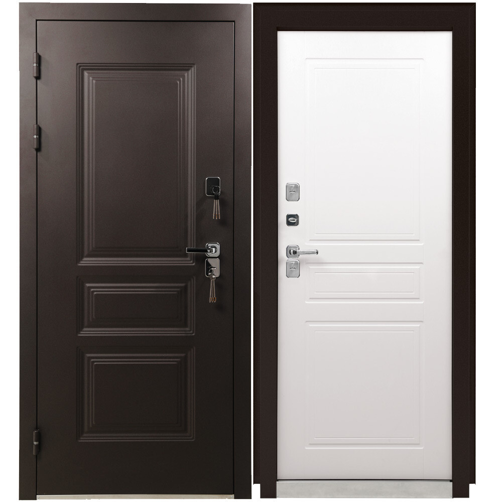 Дверь входная с терморазрывом Промет Винтер левая коричневый муар — белый грунт 880х2050 мм