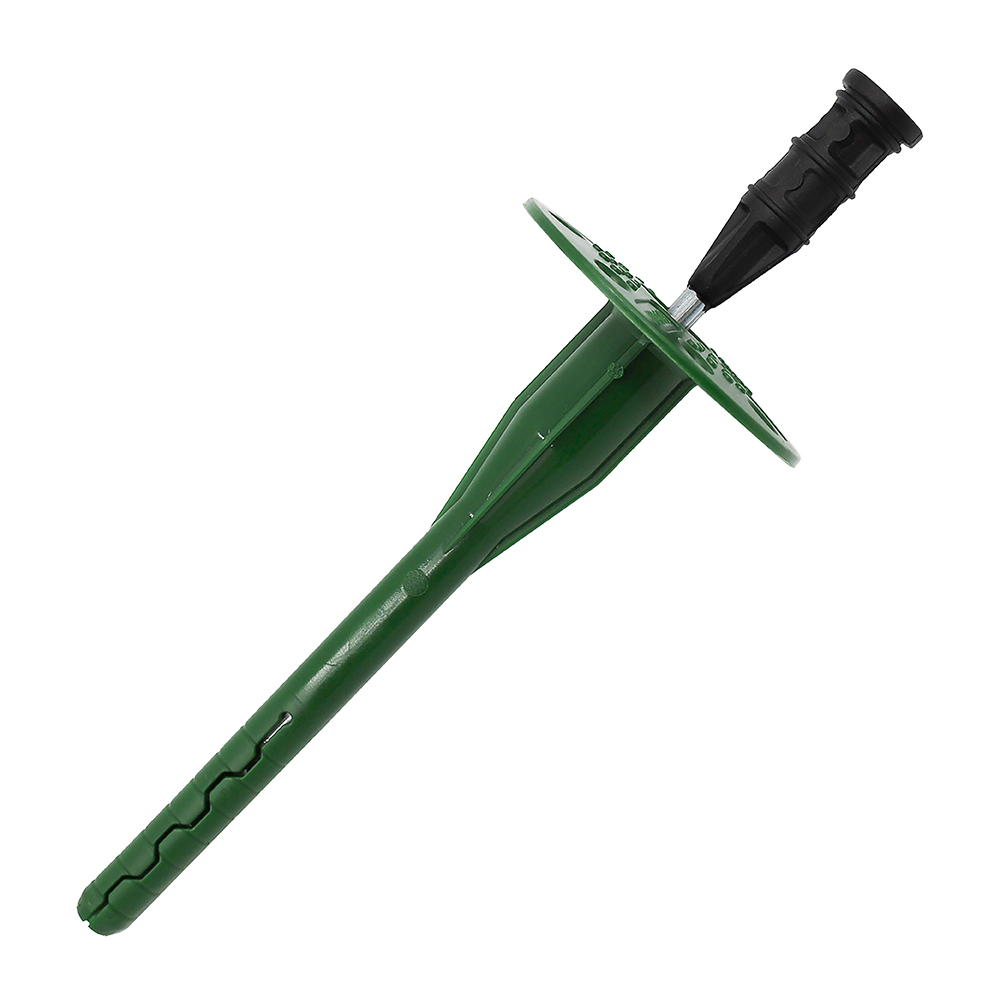 Дюбель с металлическим гвоздем с термоголовкой Daxmer IZL-T используется для крепления минваты, пенополистирола, пенопласта, прочих теплоизоляционных материалов к монолитному, шлакоблочному или кирпичному основанию. Устанавливается в предварительно высверленное отверстие при помощи молотка. Материал теплоизоляции надёжно удерживается большой цилиндрической шляпкой дюбеля, не допуская прорыва в месте крепления. Применяется для монтажа теплоизоляции в вентилируемых и оштукатуриваемых фасадах. Монтаж необходимых оснований при помощи крепежа осуществляется посредством распорного стержня, забитого в дюбель. Дюбель изготавливается из полимерных материалов, вследствие чего имеет долгий срок эффективной службы и не подвержен коррозии. Сохраняет свои свойства при низких температурах вплоть до -30 °C. Продукция прошла сертификацию и имеет Техническое свидетельство Минстроя РФ.