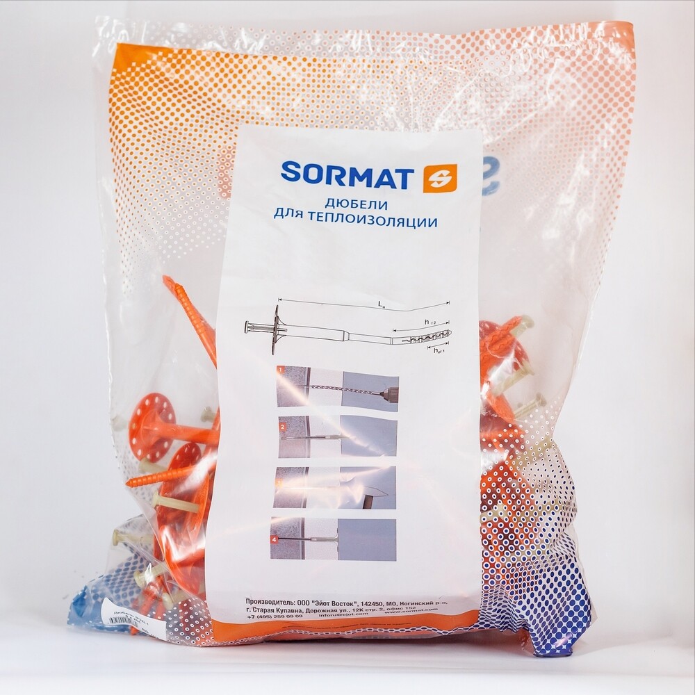 Дюбель теплоизоляционный Sormat ФЗД-1. Применяется для крепления различных видов изоляционного материала в системах навесного вентилируемого фасада НВФ и мокрого фасада СФТК. Одобрен для использования в полнотелом бетоне, газобетоне, легком бетоне и полнотелом кирпиче.