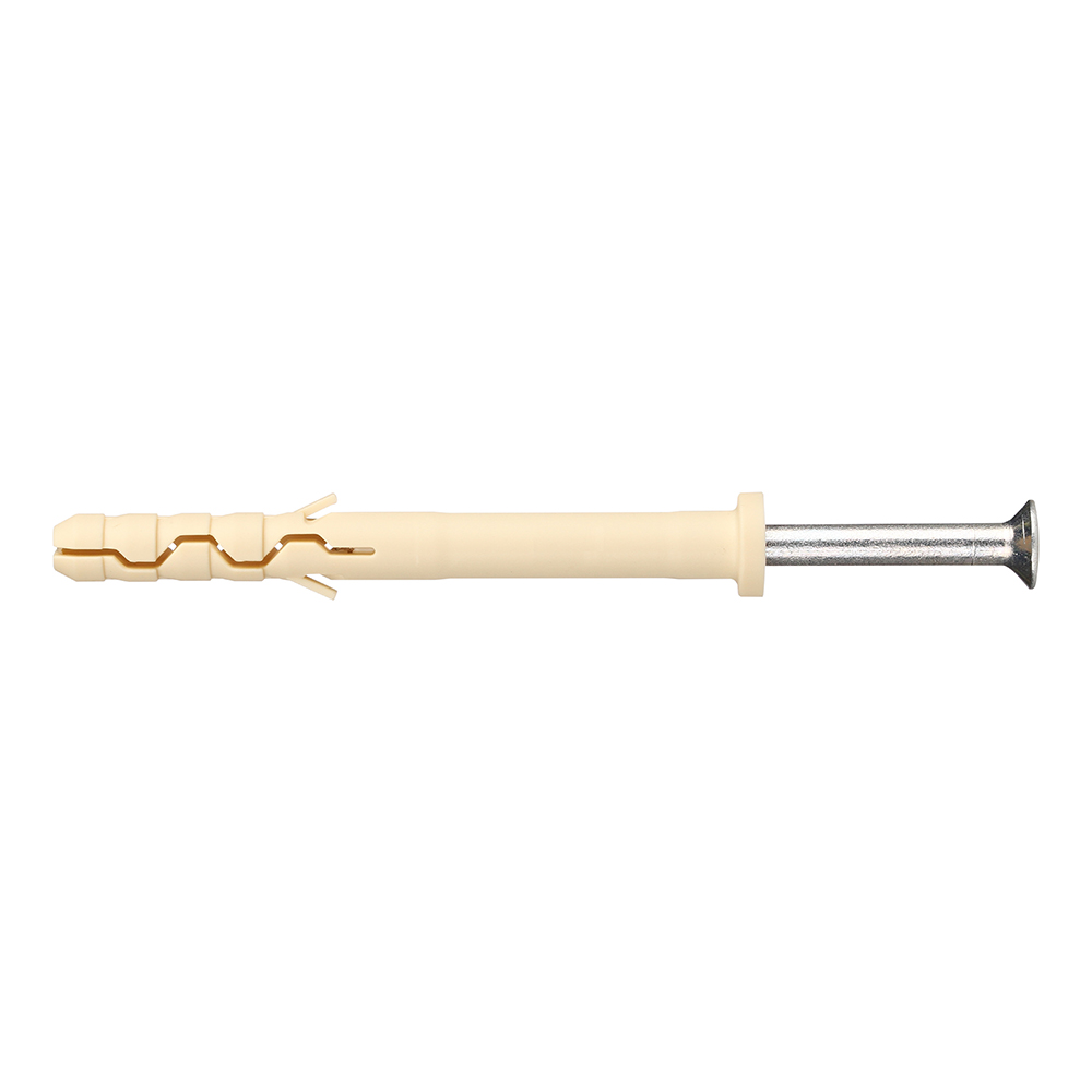 Нейлон обеспечивает надежное сцепление с материалом основания. Резьбовой оцинкованный гвоздь повышенной прочности заранее установлен в дюбель.