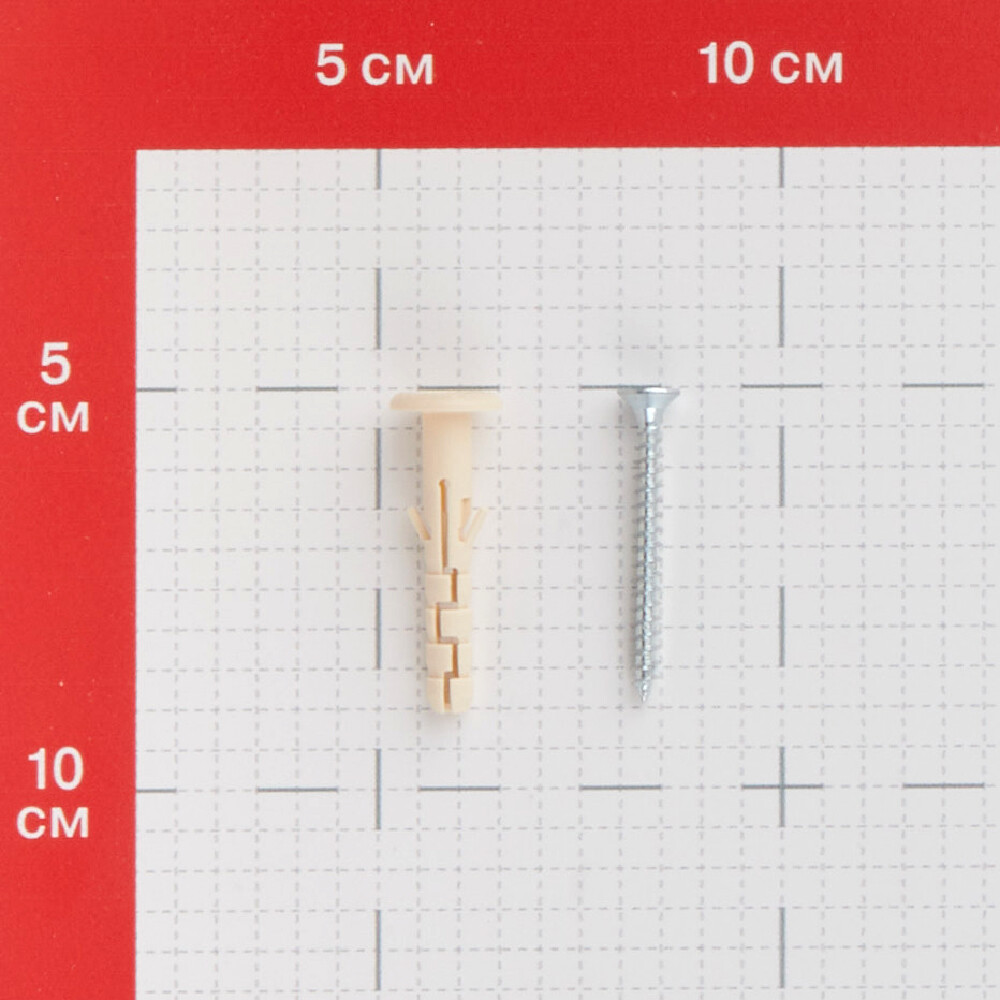 Предназначен для крепления сквозь прикрепляемый материал (сквозной монтаж). Широкий бортик обеспечивает лучшую фиксацию прикрепляемого материала за счет большей прижимной площади. Идеально подходит для крепления металлических профилей и направляющих. Геометрия внутреннего профиля центрирует шуруп при установке, обеспечивая равномерное раскрытие дюбеля. Толщина прикрепляемого материала не более 10 мм. Дюбель рекомендуется использовать с универсальным шурупом. Дюбель в комплекте c шурупом 4×40 мм.