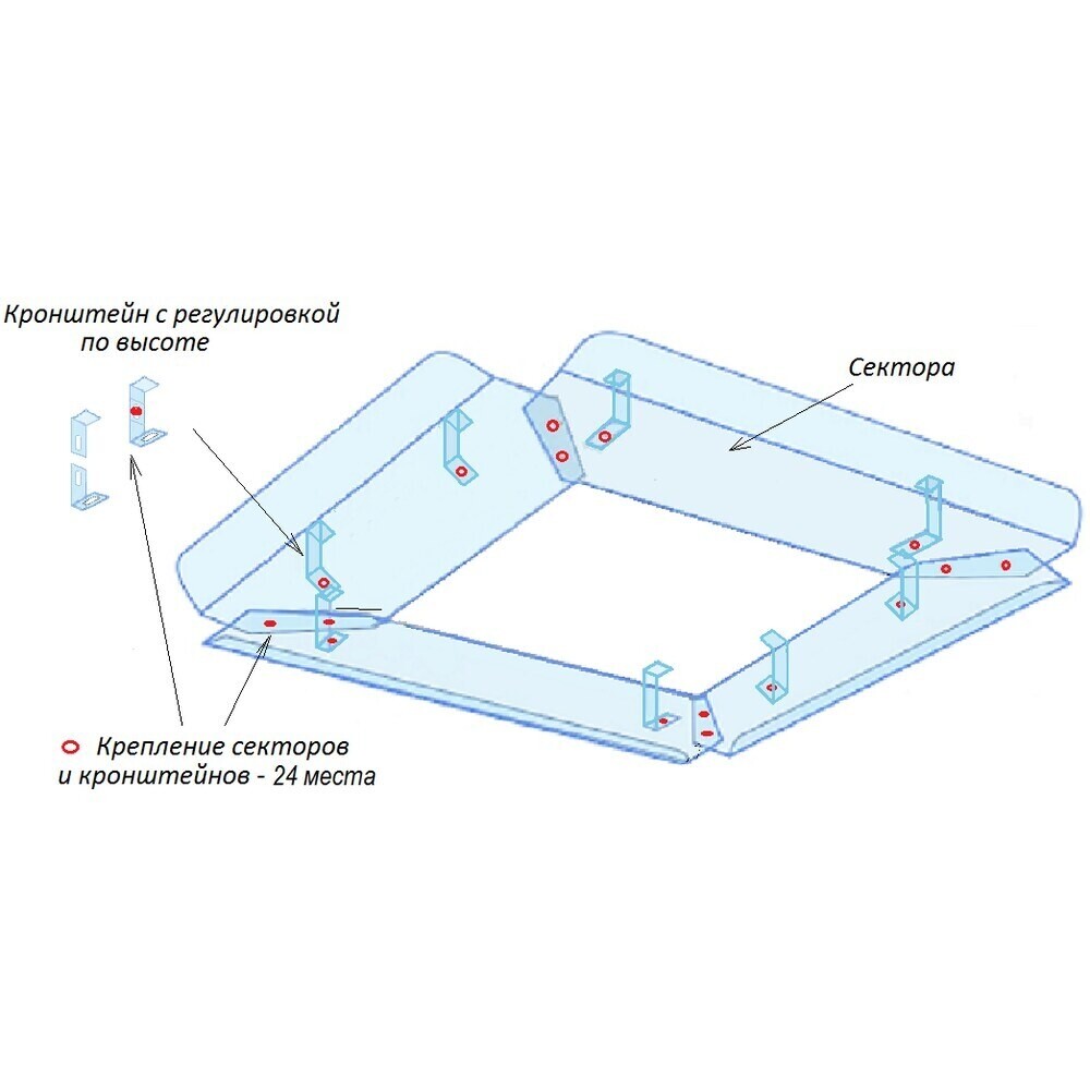 Экран потолочный сборный для кондиционера 900х900 мм. Для потолочных кондиционеров с размером декоративной панели от 880х880 до 920х920 мм. Предназначен для рассевания потока воздуха от кондиционера.