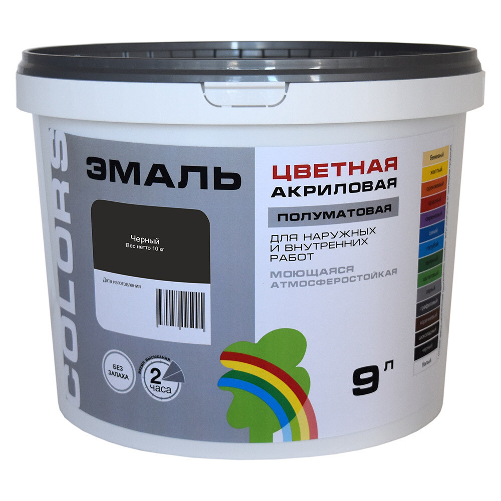 Эмаль универсальная акриловая Радуга Colors черная полуматовая 9 л