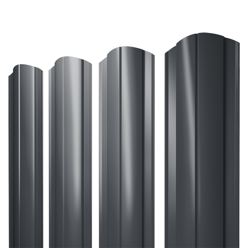 Евроштакетник двухсторонний круглый 0,45 мм 128х1500 мм графитовый серый RAL 7024 фигурный срез