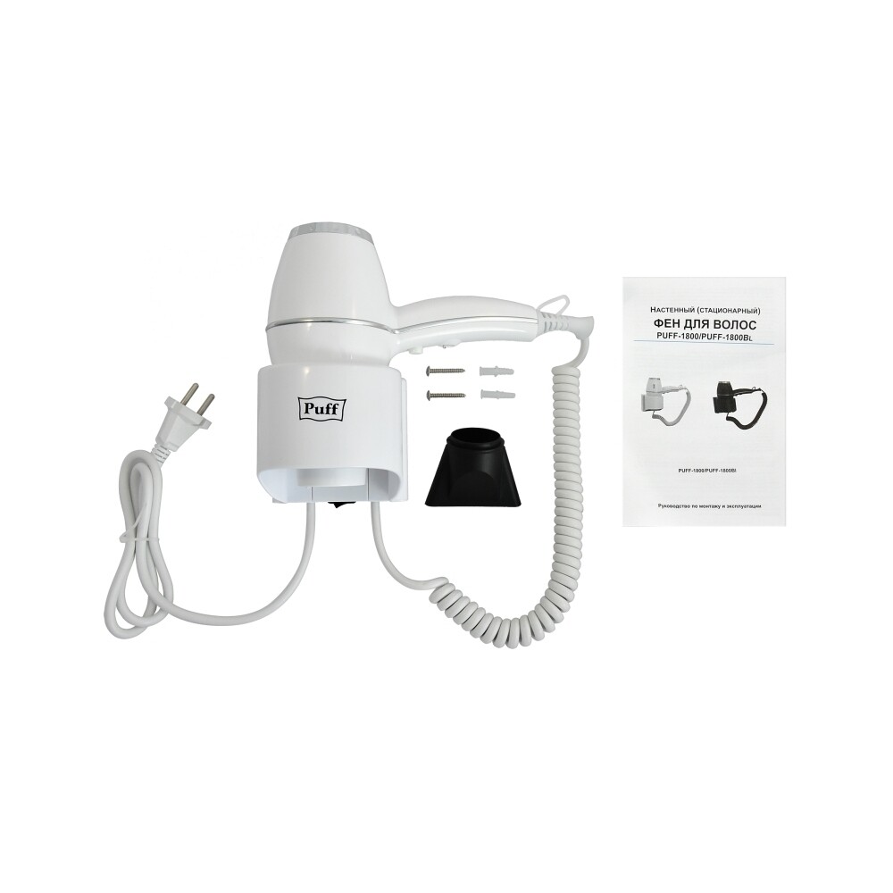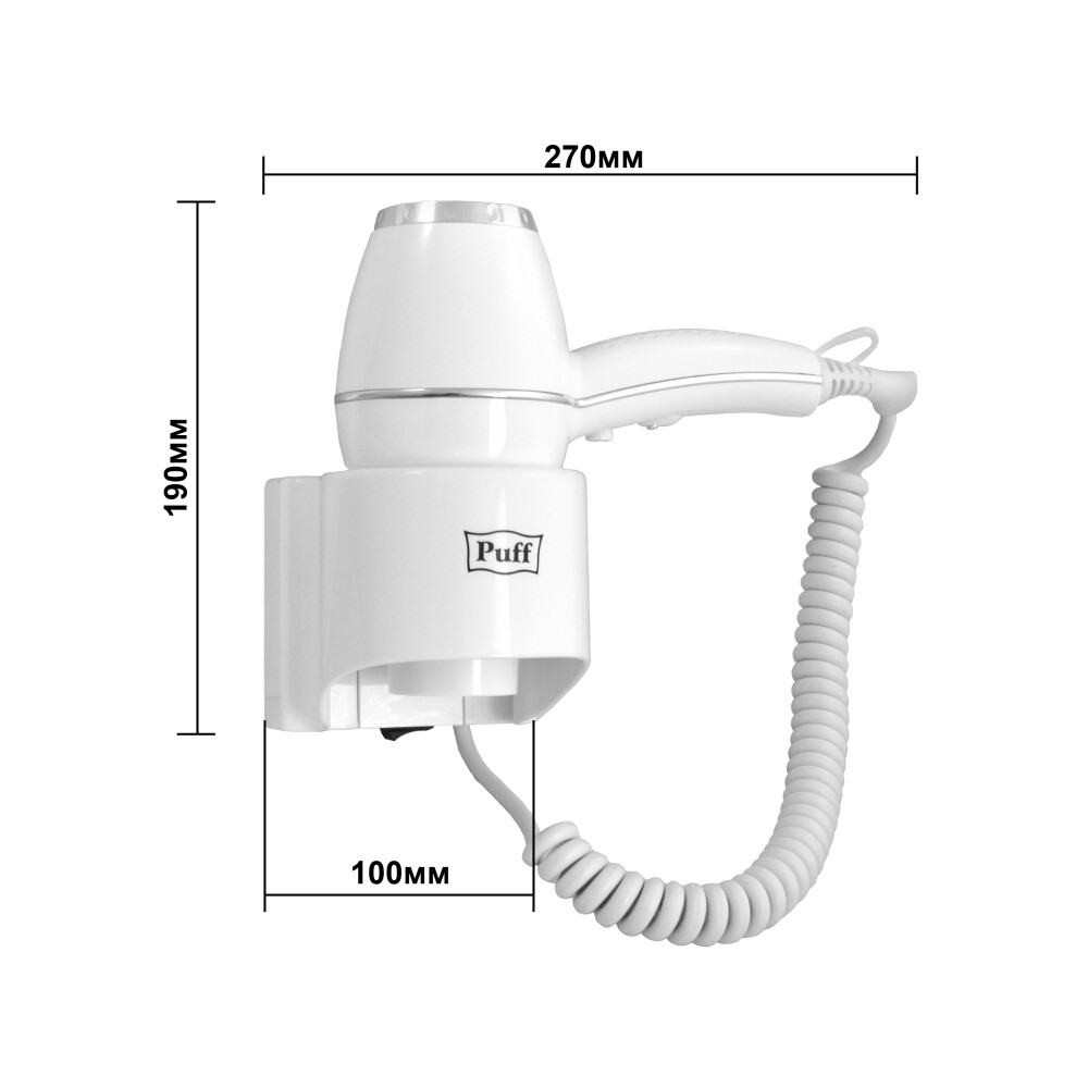 Фен для волос настенный Puff 1800 1800 Вт белый