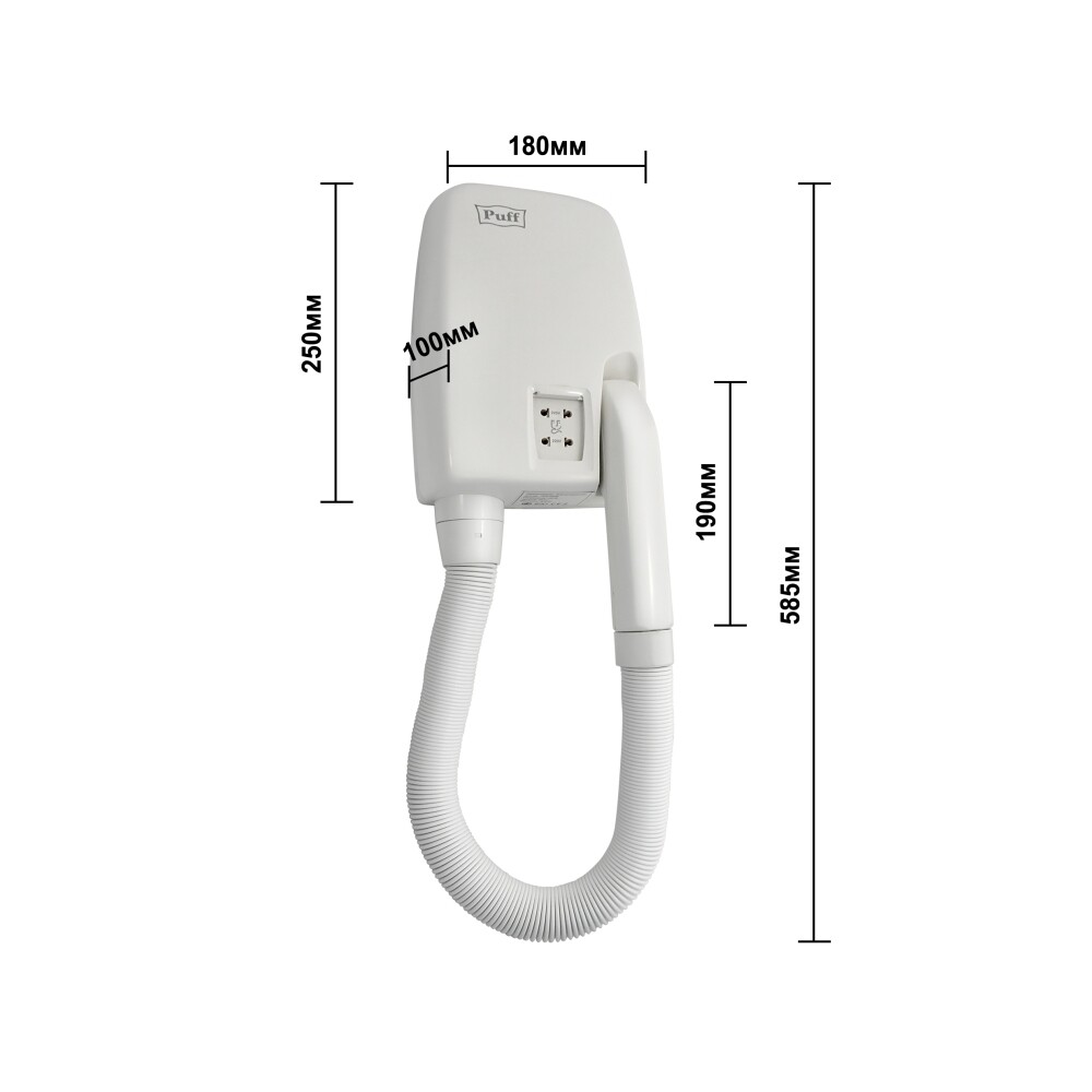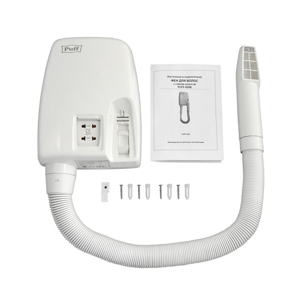 Настенный фен для волос «Puff-850B» с гибким шлангом предлагает множество преимуществ для удобного использования. Три режима скорости обеспечивают оптимальное высушивание волос.