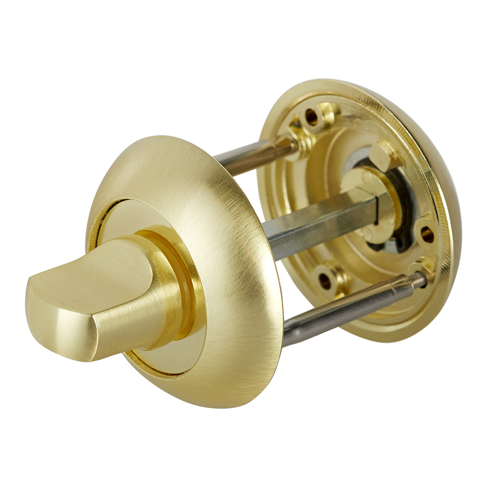 Фиксаторы на круглом основании Punto BK6 серии TL из коллекции SIMPLE LIVING подходят для установки на внутренние входные и межкомнатные двери. Материал изготовления: ZAMAK (сплав цинка, алюминия, магния и меди). Гальваническое покрытие прошло тест на устойчивость к коррозии в соляном тумане и соответствует 1 классу ГОСТ. Цвет: матовое золото/золото.
