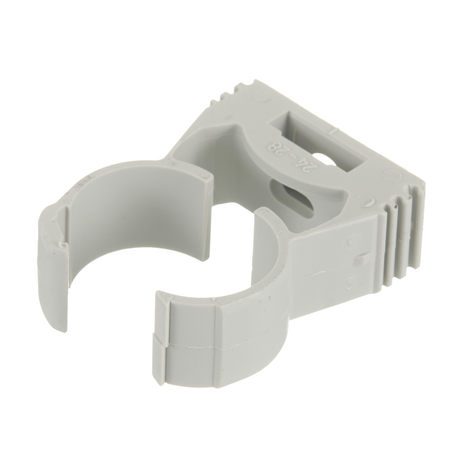 Хомут закрывается при нажатии на трубу, запатентованные боковые ребра позволяют монтировать два и более хомутов друг с другом до DN25.