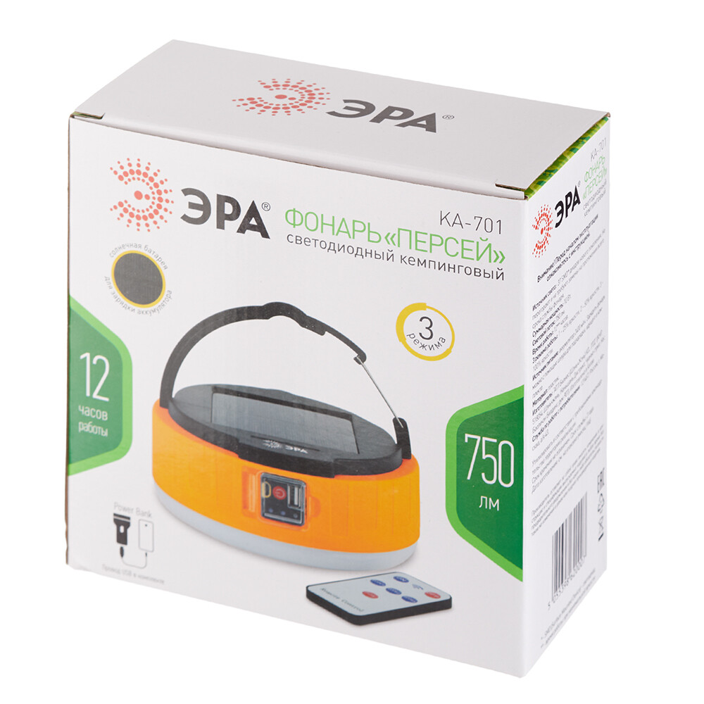Современный фонарь для кемпинга со встроенной солнечной батареей и пультом дистанционного управления. Аккумуляторный фонарь ЭРА «Персей» также заряжается от USB (кабель в комплекте). От одной зарядки непрерывно проработает 12 часов. Может использоваться в качестве powerbank — в условиях похода выручит, если нужно подзарядить телефон или другой мобильный гаджет.