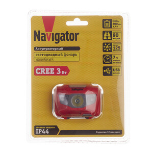 Фонарь налобный Navigator светодиодный 1 LED 3 Вт аккумуляторный Li-Pol 600 мАч пластик (140374)