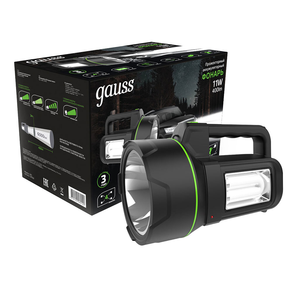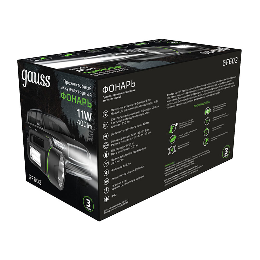 Фонарь ручной Gauss светодиодный 13 LED 11 Вт аккумуляторный Li-Ion 4800 мАч пластик 4 режима (GF602)