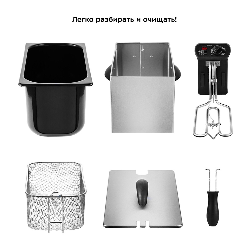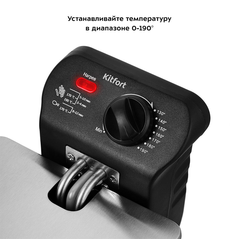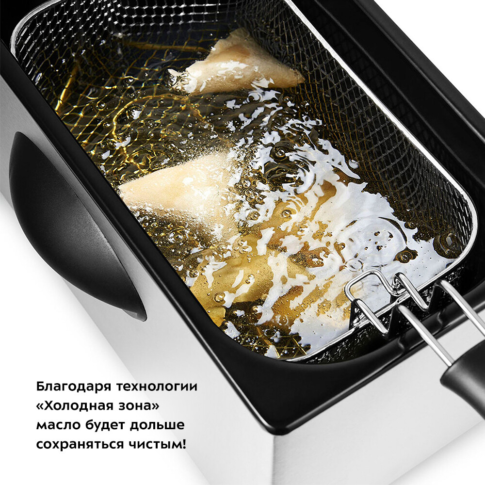 Продукты во фритюрнице Kitfort КТ-2022 готовятся быстрее, чем на сковороде из-за короткого воздействия высокой температуры со всех сторон. Хорошо зажаренные во фритюре продукты покрыты хрустящей корочкой, под которой почти нет масла. Технология «Холодная зона» предотвращает подгорание мелких кусочков продуктов‚ что улучшает вкус приготовленной пищи. Масло при этом, будет дольше сохраняться чистым. И его можно использовать до 10-15 раз повторно. У фритюрницы имеется удобный регулятор температуры с индикатором нагрева. Диапазон температур устанавливается в диапазоне 0-190 °С. Конструкция прибора полностью разборная. Чашу, крышку, корзину можно мыть с применением мочалки и моющих средств. У фритюрницы предусмотрено удобное хранение шнура.