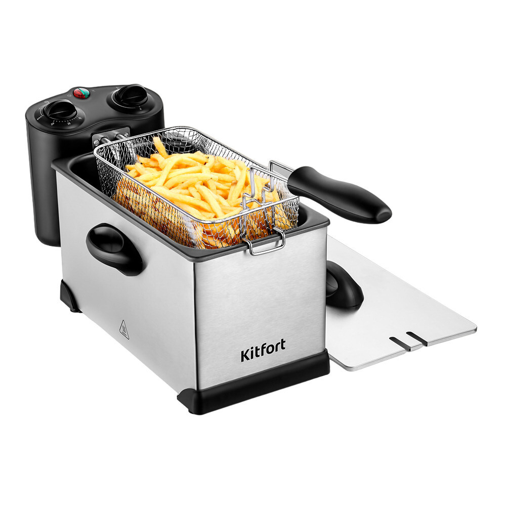 Продукты во фритюрнице Kitfort КТ-4052 готовятся быстрее, чем на сковороде из-за короткого воздействия высокой температуры со всех сторон.