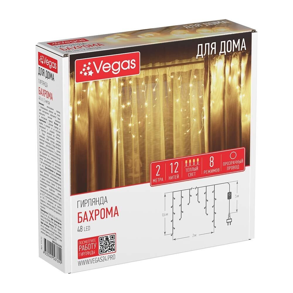 Гирлянда светодиодная Vegas Бахрома теплый белый 2х0,6 м (55112)