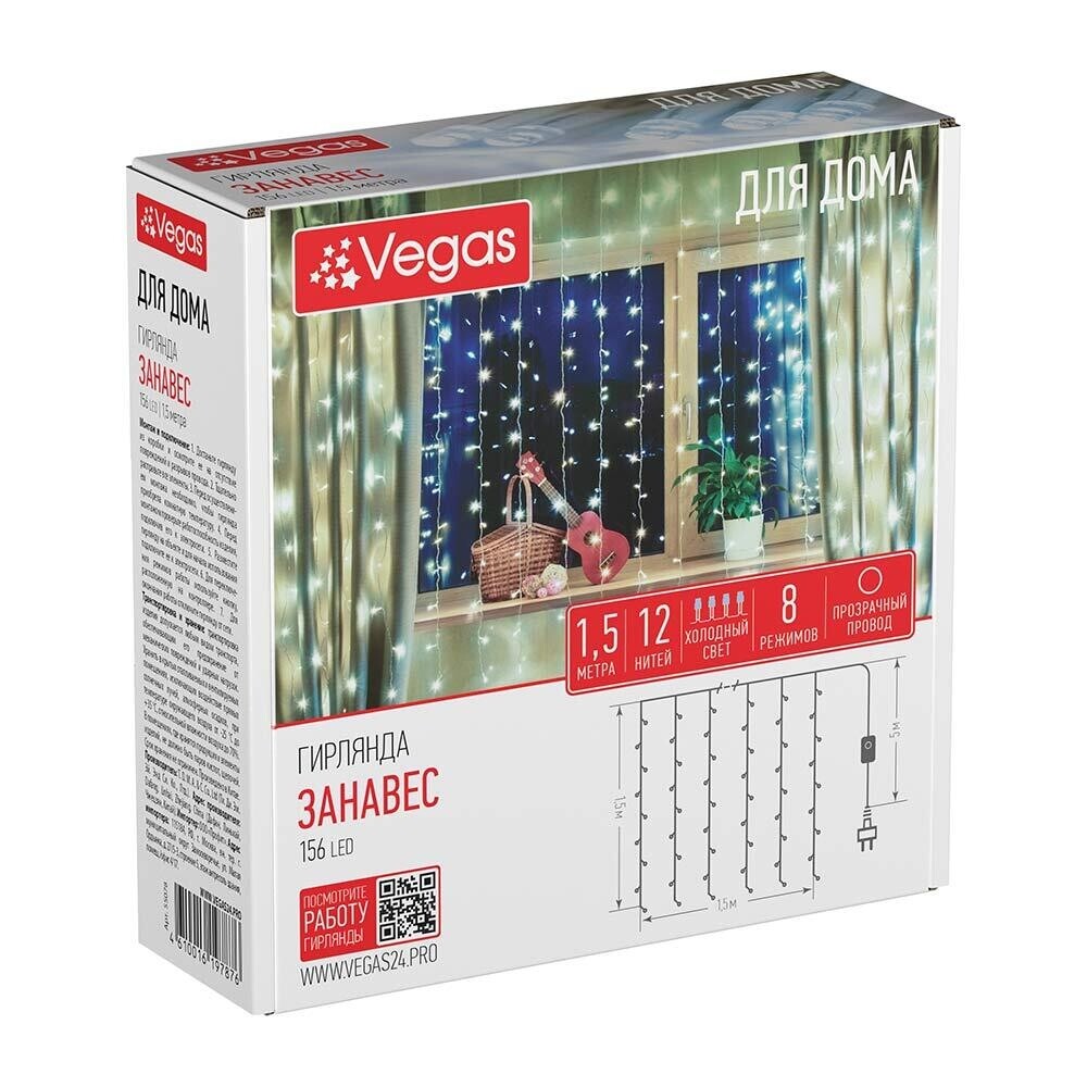 Гирлянда светодиодная Vegas Занавес холодный белый 1,5х1,5 м (55078)
