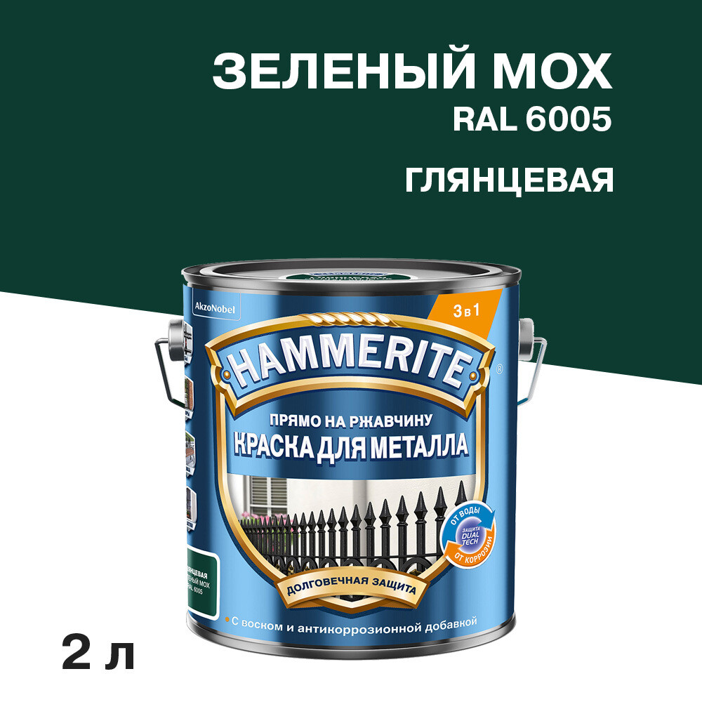 Грунт-эмаль по ржавчине 3в1 Hammerite зеленый мох RAL 6005 гладкая глянцевая 2 л