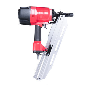 Гвоздезабивной пистолет Fubag N90 с магазином, расположенным под углом к обрабатываемой поверхности. Незаменим для работ в местах, где крепёж вбивают под углом – стяжка полов, конструкции, где образов…