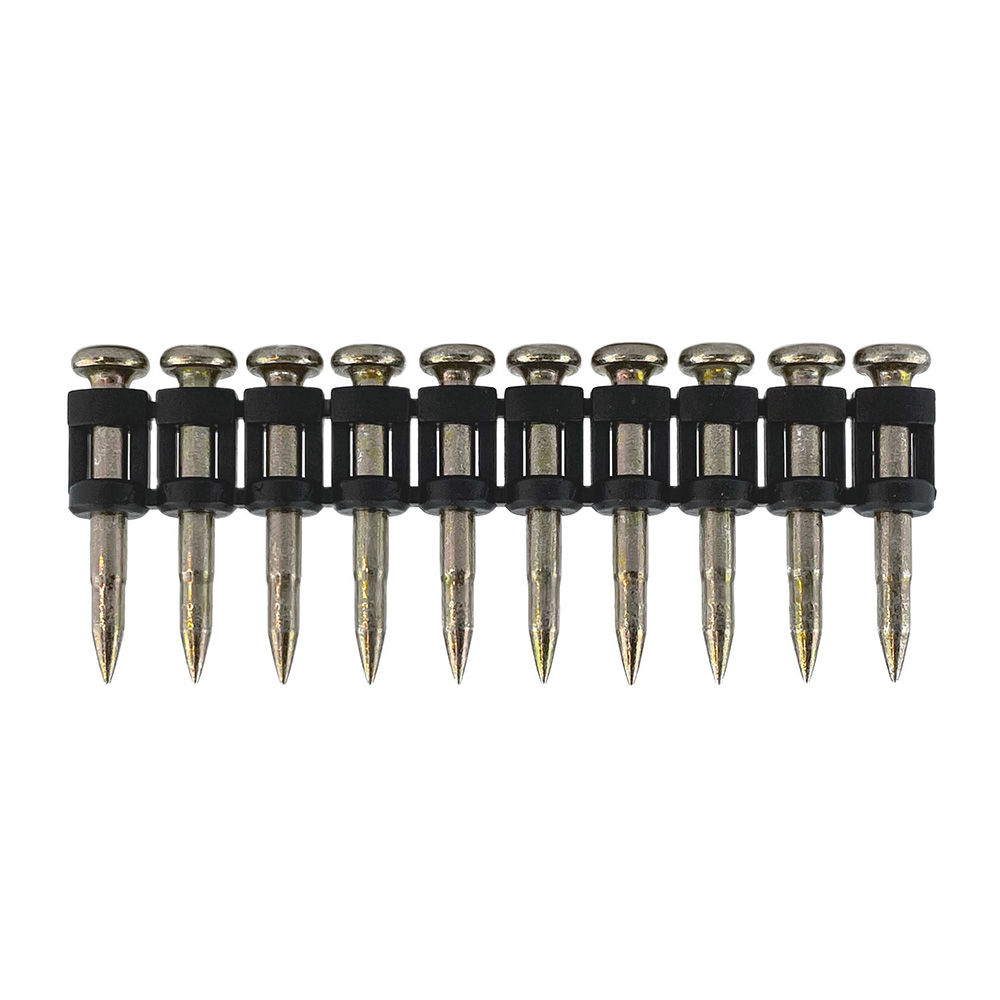 Такие гвозди рекомендуются для монтажа к бетону средней и высокой прочности, к потолочному бетону и как к немассивному (до 5 мм), так и к массивному металлу (более 5 мм).