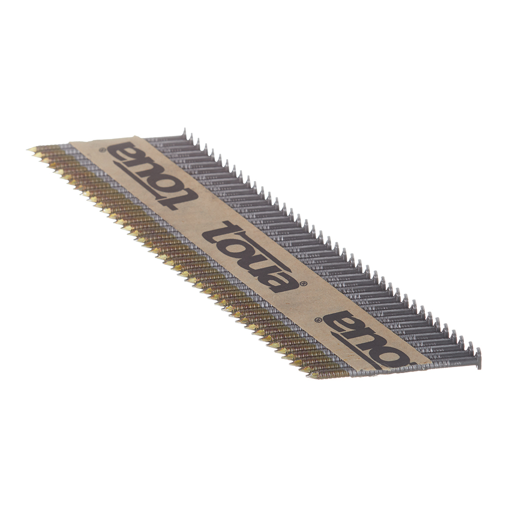 Особенностью реечных гвоздей Toua является точное соблюдение шага между гвоздями в кассете, что позволяет поршню при забивании гвоздя не задевать шляпку соседнего гвоздя и продлевает срок жизни поршня на реечном нейлере с углом наклона магазина 30-34 градуса.