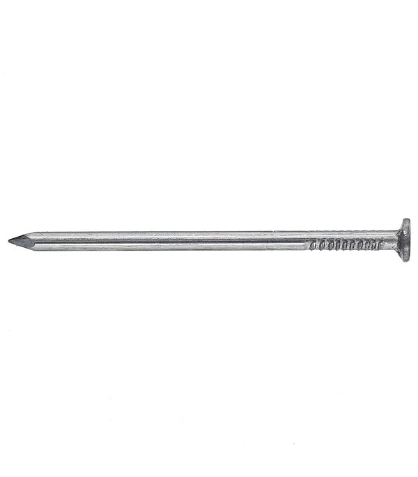 Гвоздь представляет собой длинный и прямой стержень с небольшими неровностями рядом со шляпкой, что улучшает качество соединения. Цинковое покрытие придает устойчивость к коррозии и защищает от появления подтеков ржавчины на лицевой части прикрепляемого материала при использовании внутри помещения. При использовании в агрессивной среде, во избежание подтеков, рекомендуется дополнительно шпаклевать шляпку гвоздя.