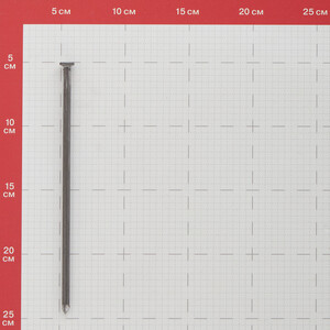Гвоздь представляет собой длинный и прямой стержень с небольшими неровностями рядом со шляпкой, что улучшает качество соединения.