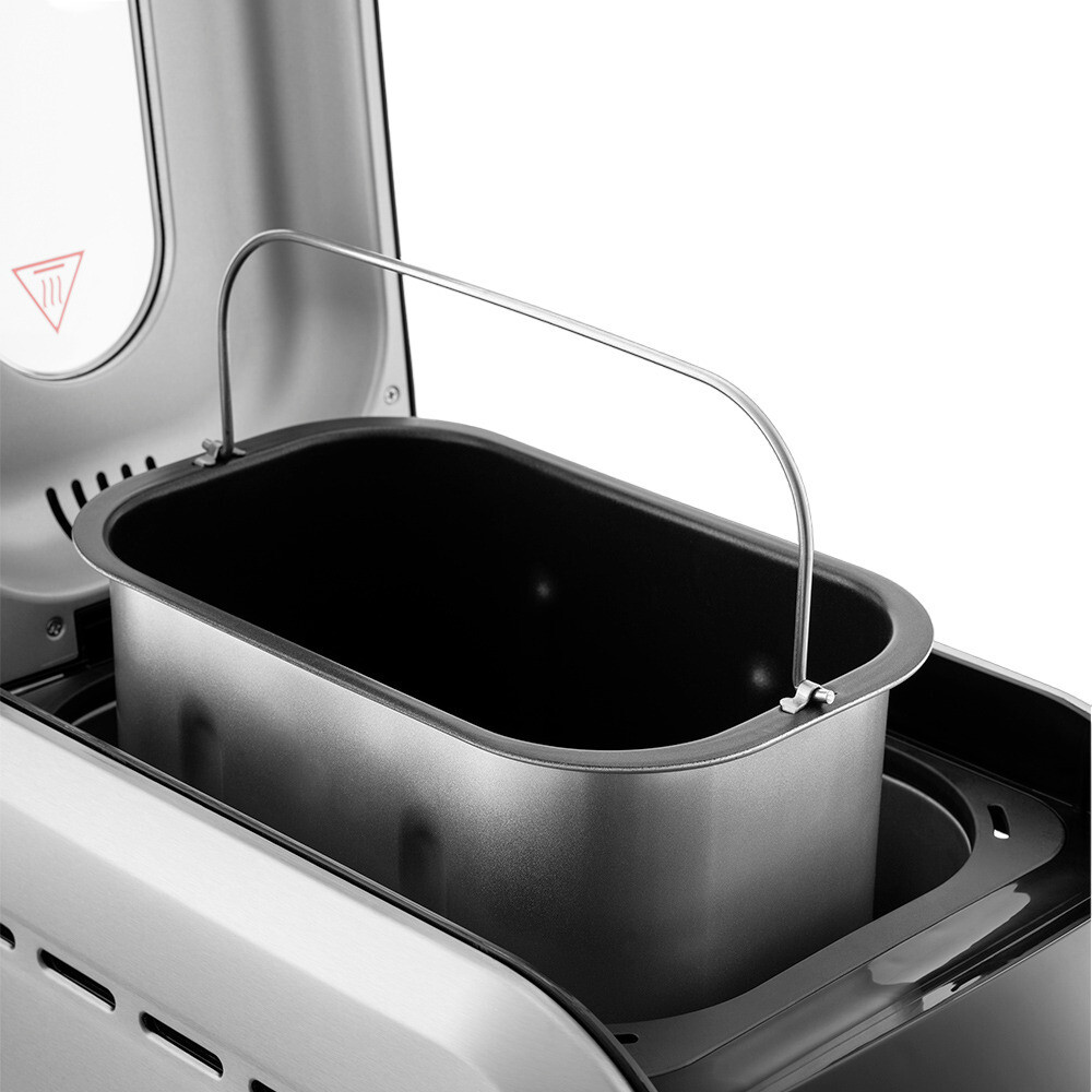 Комплектация: Хлебопечь — 1 шт., форма для выпечки с антипригарным покрытием — 1 шт., перемешивающая лопатка — 2 шт., мерный стакан — 1 шт., мерная ложка — 1 шт., крюк для извлечения лопатки — 1 шт., руководство по эксплуатации — 1 шт., гарантийный талон — 1 шт.