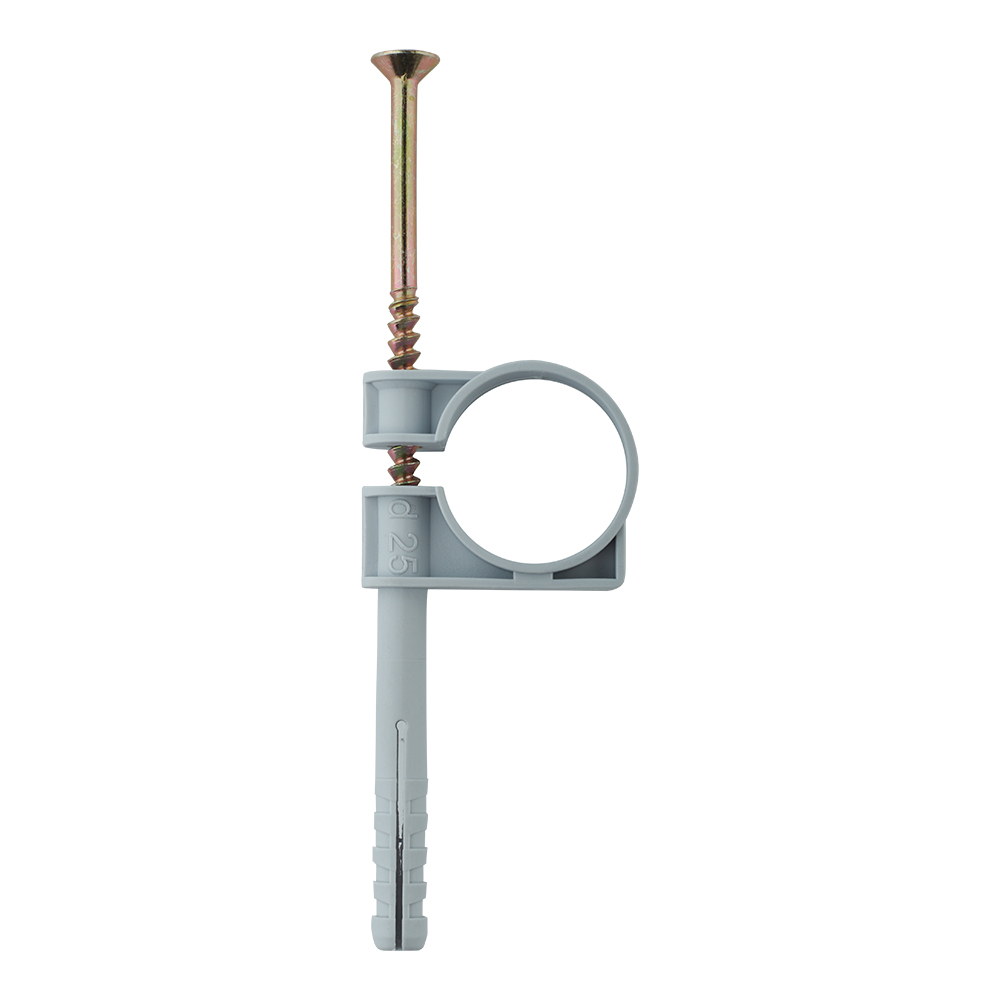 Хомут сантехнический 25-27 мм пластик с дюбелем для крепления трубы (5 шт.)
