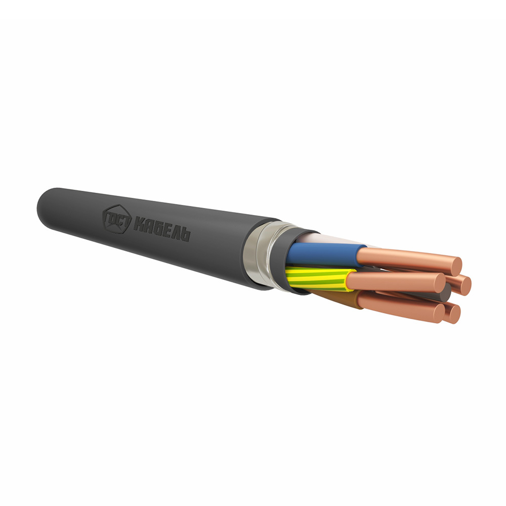Кабель с медными жилами, с изоляцией из ПВХ пластиката, бронированный стальными лентами с защитным шлангом из ПВХ пластиката, не распространяющий горение по категории А с низким дымо- и газовыделением.