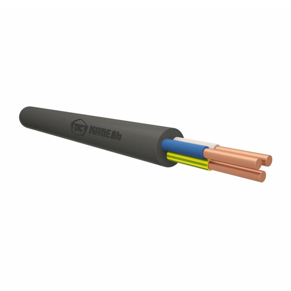Кабель с медными жилами, с изоляцией и наружной оболочкой из ПВХ пластиката, не распространяющий горение по категории А с низким дымо- и газовыделением.