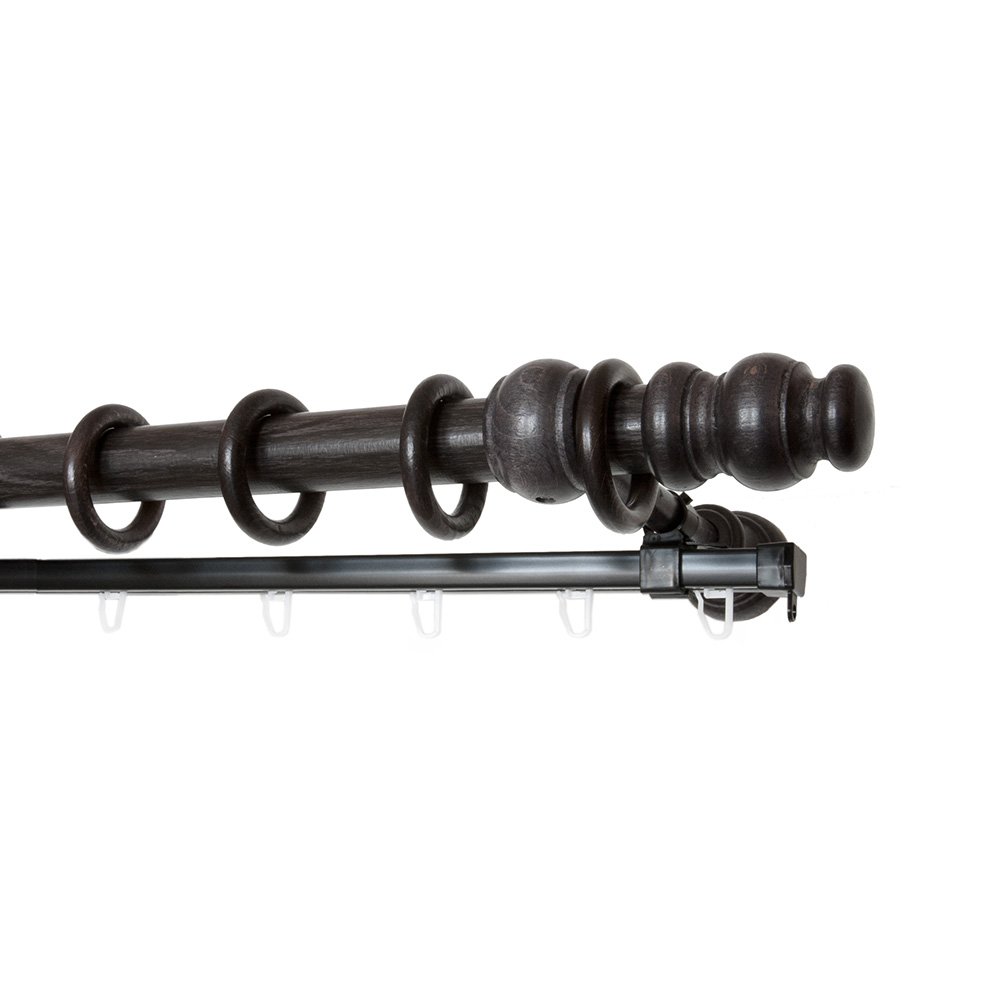 Карниз настенный деревянный двухрядный круглый 200 см d 28 мм венге
