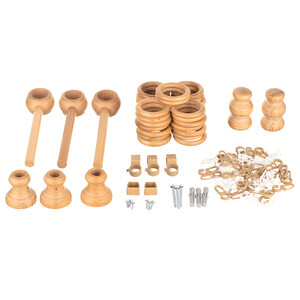 Комплектация: Штанга — 1 шт., Кронштейн — 3 шт., Кольцо — 30 шт., Крючок для колец — 30 шт., Наконечник — 2 шт., Направляющая — 1 шт., Крючок для направляющей — 30 шт., Комплект крепежа — 1 шт., Инструкция — 1 шт.