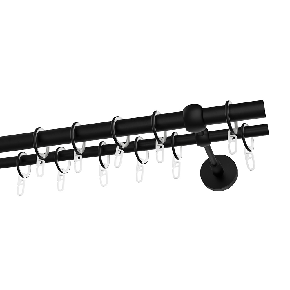 Карниз настенный металлический двухрядный круглый 280 см d20 мм черный