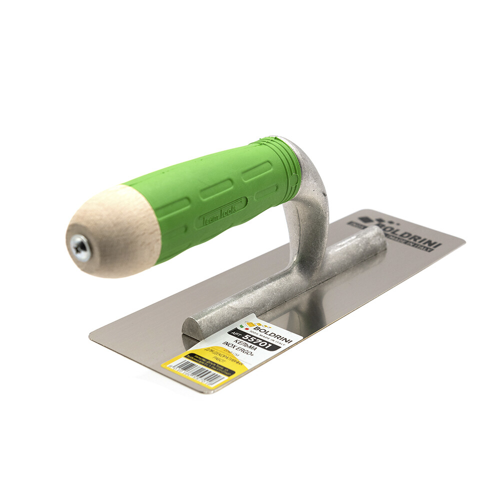 При помощи кельмы Boldrini наносится большинство декоративных покрытий — венецианские и фактурные штукатурки, покрытия под шелк, лессирующие финитуры и воски. Лезвие выполнено из нержавеющей стали методом сварки, что гарантирует устойчивость к высоким нагрузкам. Деревянная ручка с пластиковым ободом обеспечивает надежность обхвата, гарантируя высокую производительность.